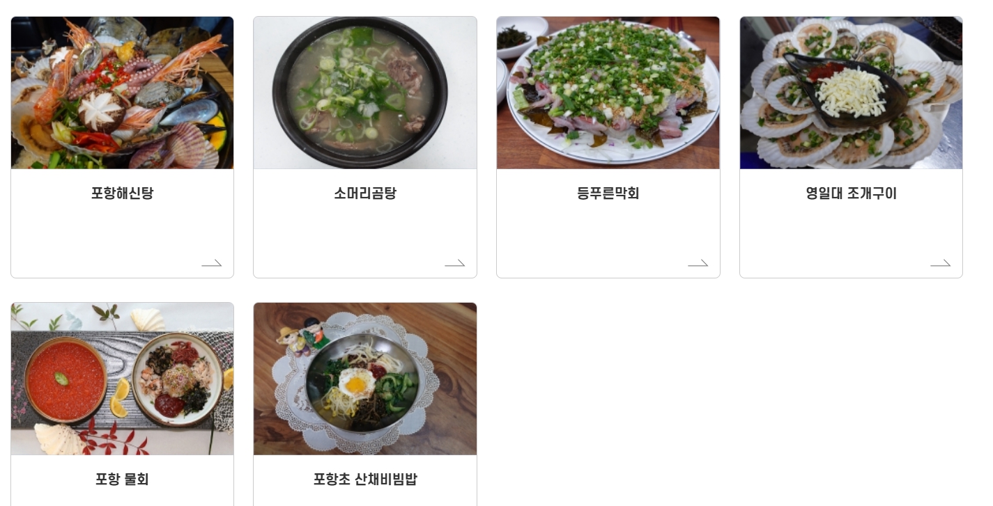 영일대해수욕장 주변에는 회·물회 전문점이 밀집해 있어 바다 바로 앞에서 신선한 해산물을 즐기기 좋습니다.
